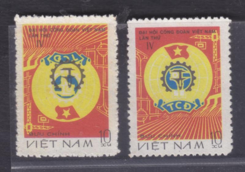 Vietnam 3rd Trade Union Congress 10xu 2 unused center inverted error variety stamps (Image)