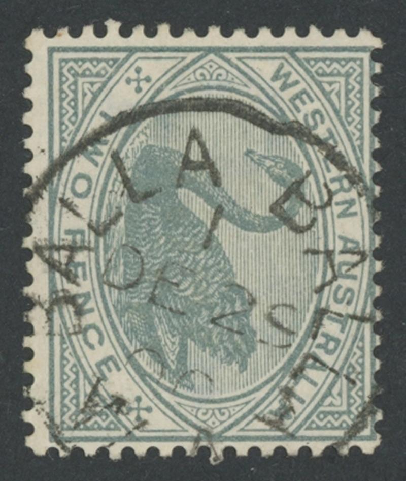 Balla Balla: 'BALLA BALLA/DE 29/00/W.A' cds (code 1) largely very fine almost complete strike on Swans 2d grey. PO 29.10.1897; closed circa 1903 [Lighterage Port; 64km ENE of Roebourne]. A large-part strike sold at a Perth auction in 2021 for $460. (Image1)