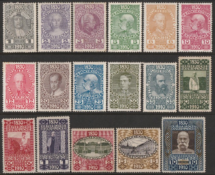 1910 Birthday set 1h-10Kr. VF fresh M/MLH. SG 223-39 cat £800. Mi 161-77 cat €1100. (17) (P) (Image1)
