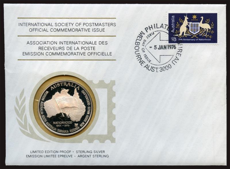 International Society of Postmasters (1976-78) philatelic First Day Covers each with a silver medallion (20g, 0.925) in album, total asw 0.666kg.