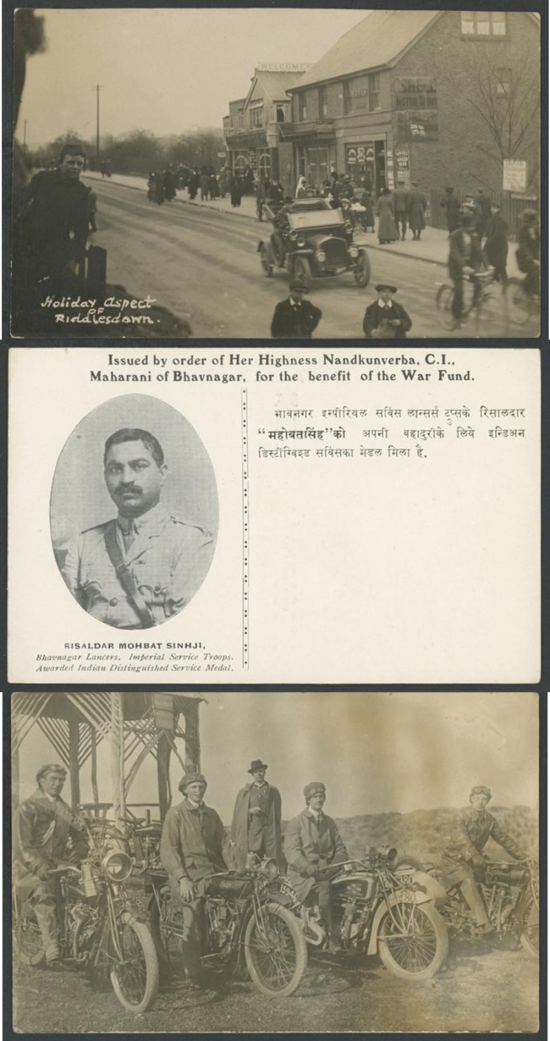Selection on pages with GB including a lovely group of real photo views of Riddlesdown & Coulsdon, attractive Ceylon group x37, WWI including a few real photo types & Indian Maharani of Bhavnagar War Fund cards x5, several Zieher "stamps" cards, etc, mostly fine to very fine.