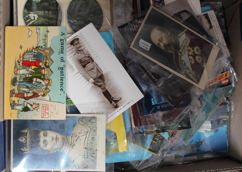Large quantity of Australian & Worldwide cards in eight heavy archive boxes, from early 1900s onwards up to the 1970s including topographicals, humour, artists & greetings, military, transport, etc, plenty of pickings throughout, condition mixed but mostly fine to very fine. Weighs 73kg.
