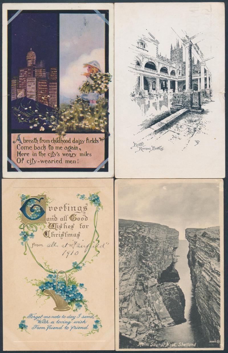 Ex-dealer's stock of Greetings types (mostly), topographicals, etc, all priced in plastic sleeves & ready for the next show's bargain box, condition variable but generally fine to very fine.