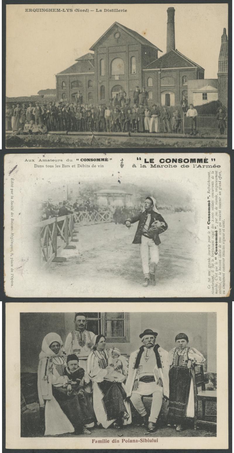 Oldtime original collection in five albums with mostly topographicals from India, Egypt, Italy, France, England & Scotland, one album mostly Belgium with numerous WWI subjects including ruins, humorous Beverloo Camp series & some postal history, one album mostly Hungary including national costumes & a few Rumania, lots of subject/thematic interest, condition variable but generally fine to very fine.
