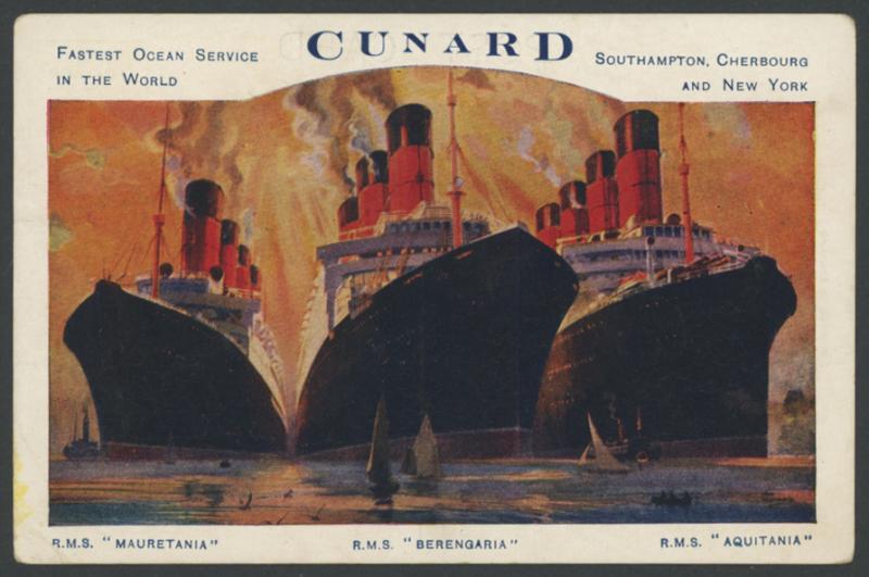 SHIPPING - GREAT BRITAIN: Cunard pre-WWII partly-annotated collection of mostly artist cards including excellent advertising types, some inscribed 'Canadian Service' or 'Cunard White Star' after their merger in 1933, generally fine to very fine.