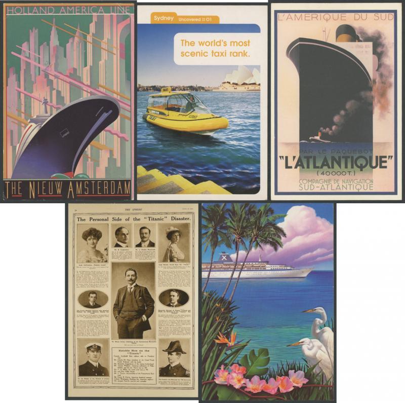 SHIPPING: Seven cartons of loose cards with strength in 1950s-1970s material covering coastal vessels to car ferries, and infrastructure to ocean liners including many that brought 'Ten Pound Poms' & other migrants to Australia after WWII, also reproductions of shipping posters including superb Art Deco designs, 1993 'Loss of the Titanic' set of 32 featuring photos from the 1912 disaster, then a quantity of moderns with strong advertising content (and some very heavy duplication), mostly unused & generally fine to very fine. Estimated at a few cents per card. Weighs 75kg.