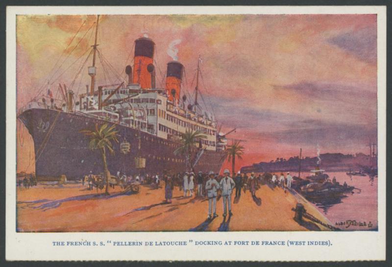 SHIPPING: France mostly pre-1960 collection of ship "portraits" principally of trans-Atlantic vessels with many paquebots (mail boats), about one-third for Messageries Maritimes including several 1930s advertising types, etc, condition variable but most are fine to very fine.