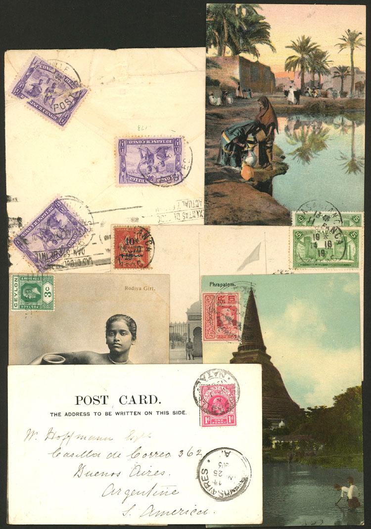 5 Postcards sent to Argentina between 1903 and 1920 from Natal, Thailand, Ceylon and Morocco (2), all of very fine quality + cover from Belgian Congo (defects), attractive lot! IMPORTANT: Please view ALL the photos of the lot, because all the cards have been scanned (both sides) (Image)