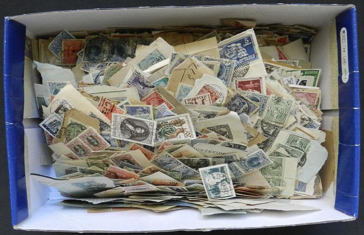 Shoebox containing MANY THOUSANDS of stamps of varied countries, from very old to circa 1960, mostly used, a large percentage on fragments, the general quality is excellent. Lot with huge potential, good opportunity! (Image)