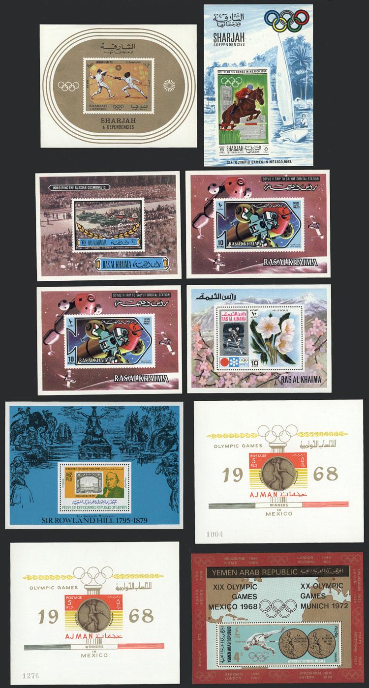 ARAB COUNTRIES: Lot of several dozens VERY THEMATIC souvenir sheets, all unmounted and of excellent quality, with moderate duplication, I estimate a Michel catalog value of Euros 1,700 or more! (US$2,400 or more), good opportunity at a low start! (Image)