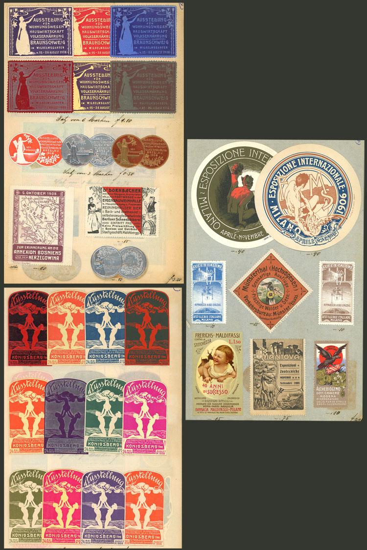 13 Sheets with special impression of postage stamps, in general to commemorate various expositions, VF quality! (Image)