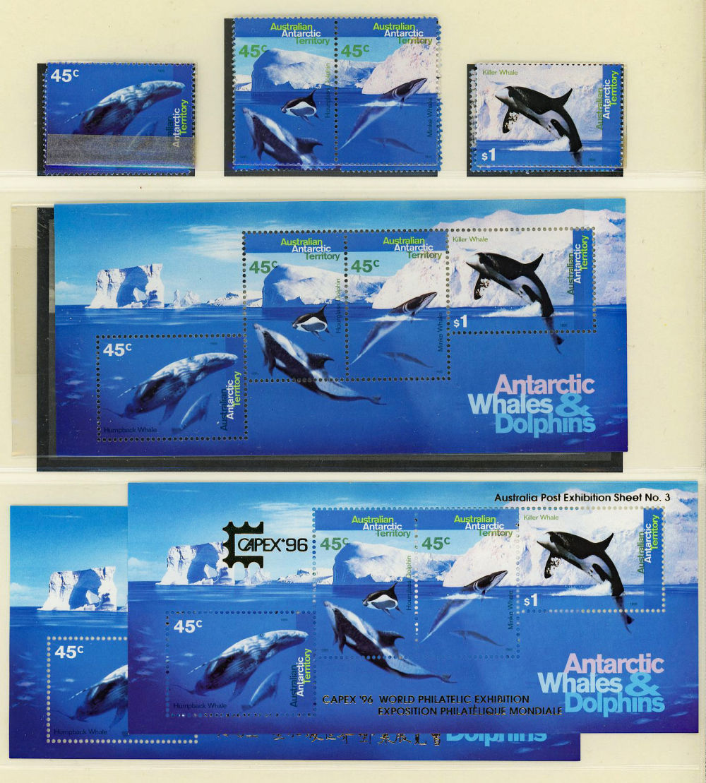 (#L1/L117) AUSTRALIA VOLUME-5 ANTARCTICA 1957-2001, 232 stamps mounted in a deluxe hingeless Lindner album, MNH single stamps near complete missing only a few 2000-2001 issue, the used stamps are complete to 1997 and mounted under the mint stamps, Scott cat over $474 US ($680 CDN), more than $180 Australia face value and the album retails $300 alone, choice VF est ($150+ US) (Image)
