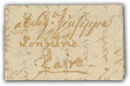 1839, pigeon post dated "12.III.1839" small envelope sent from Livorno to Cairo (Image)