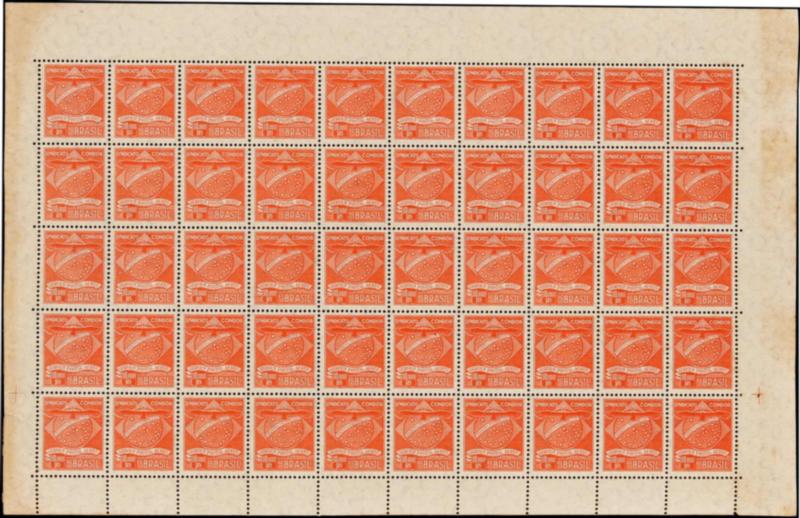 1927, Syndicato Condor LTDA, 10.000 R. Landesfahne u. Firmenzeichen orangerot, kpl. Druckbogen zu 50 Werten postfrisch, im Bogenrand vorder- und rückseitig etwas getönt sowie Falzreste, sonst gute Qualität (ME 900,- ++ für ungebr.) (Image)