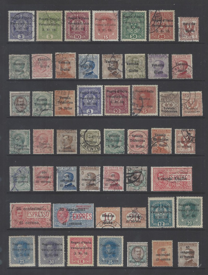 N1 // N74, NE1-NE3, NJ1 // NJ11, 1918-19 Issues (Italian Occupation), 42 Diff. Used Stamps + 16 Diff. Mint Stamps, Generally Sound Cond., Mostly F-VF (Image)