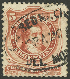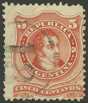 GJ.38, 5c. Rivadavia, groundwork of crossed lines, with mailbox "18" cancel, VF (Image)