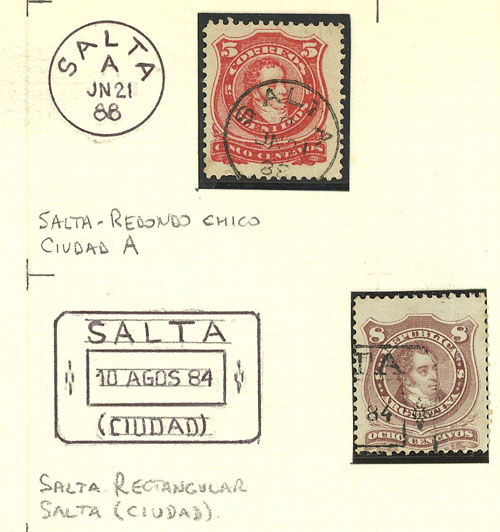 GJ.54 + 84, 5 and 8c. Rivadavia, used with cancels of Salta, VF (Image)