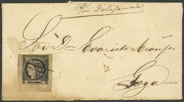 GJ.6, 2c. ocher-yellow, type 5, on folded cover sent "by stagecoach" to Goya, pen cancelled (Image)