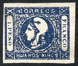 GJ.17A, 1P. INDIGO BLUE, beautiful example of very ample margins, mint, excellent quality! (Image)