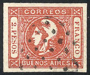 GJ.18, 2P. red, semi-clear impression, fantastic example with dotted cancel, excellent quality! (Image)