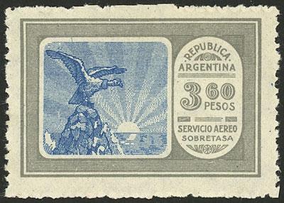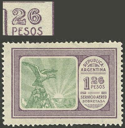 GREAT RARIETY: GJ.654I, the high value of the first airmail issue printed on ENGLISH PAPER, excellent quality, very rare (the normal paper is Austrian, the watermark is very different, a few examples are known on this English paper!) (Image)