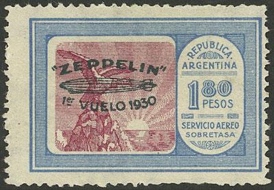GJ.669, 1930 Zeppelin 1.80P. with GREEN overprint, high value of the set, very fine quality, signed by Juan Mautalén on back (Image)