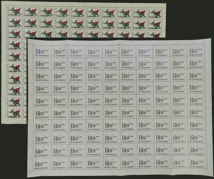 GJ.1700, 1975 Revalorizado $19.70 on 5.60, complete sheet of 100, all with OFFSET IMPRESSION of the overprint on back, excellent quality, possibly the only complete sheet in existence! (Image)