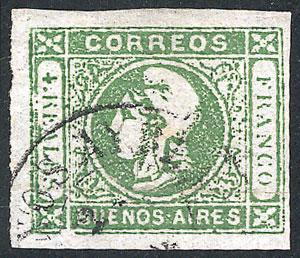 GJ.16, 4R. green, dull impression, with DATESTAMP of Buenos Aires, superb! (Image)