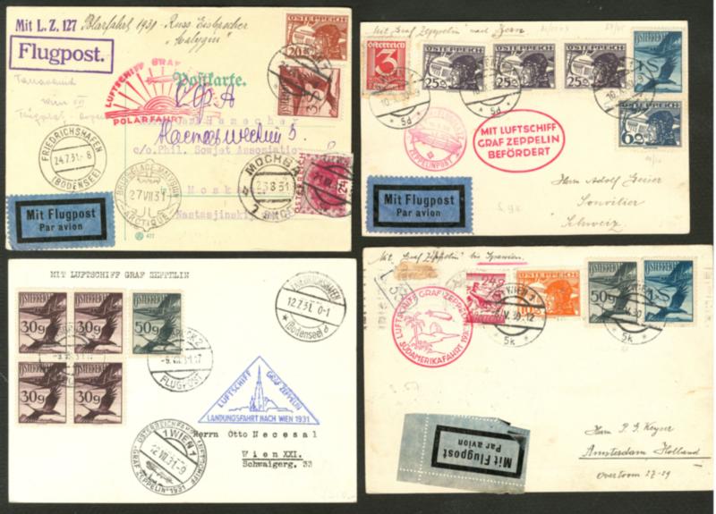 Poste Aérienne. Zeppelin. 1930-1931, 4 CP affts, CS, OS et destinations divers. - TB (Image)