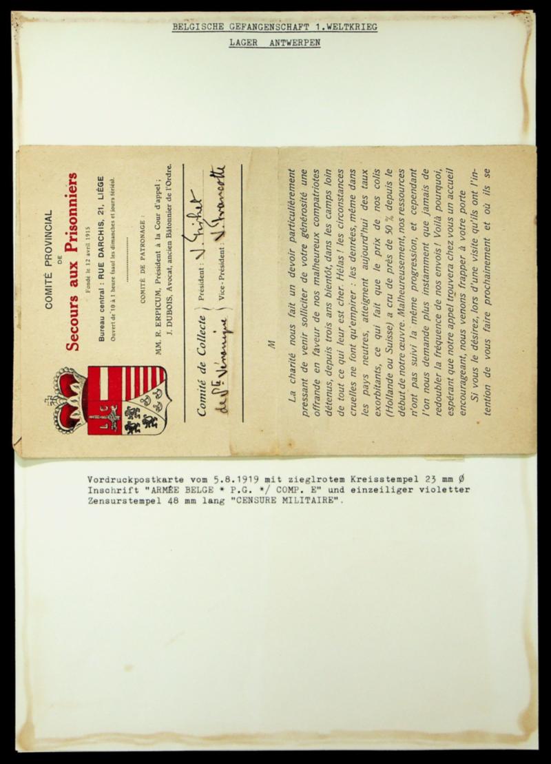Belgium WWI Committee for Relief to Prisoners printed matter (Image)