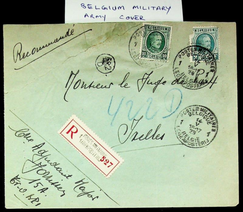 Belgium 1929 King Albert I 2v on Military Regd cover w/ circular "422/ D" cachet to Ixelles (Image)