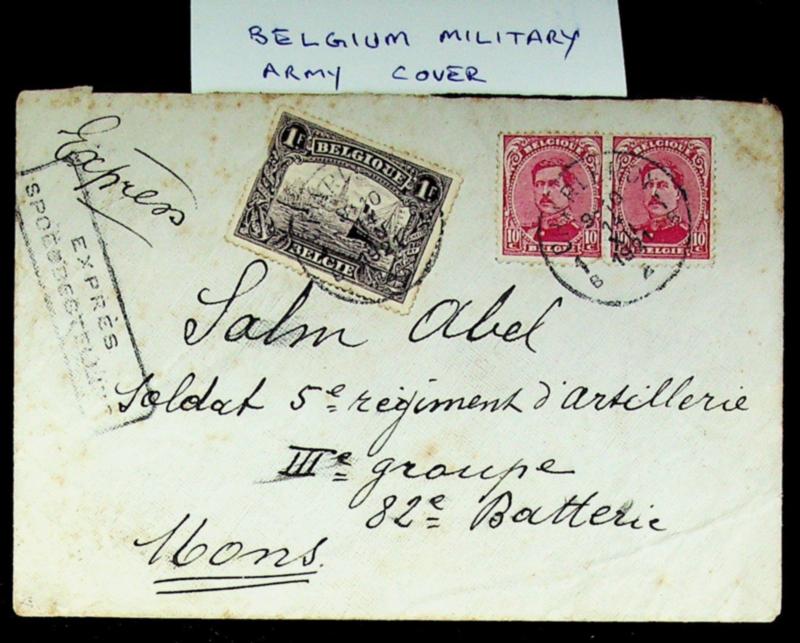 Belgium 1921 King Albert I 10c pair+ 1f on Military Express cover from Dampremy to Mons (Image)