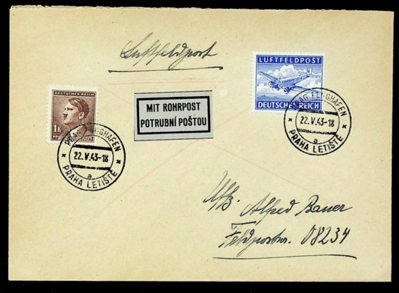 Germany Czech Bohemia & Moravia 1943 WWII Hitler 1k+ Airmail Feldpost vignette from Praha (Image)
