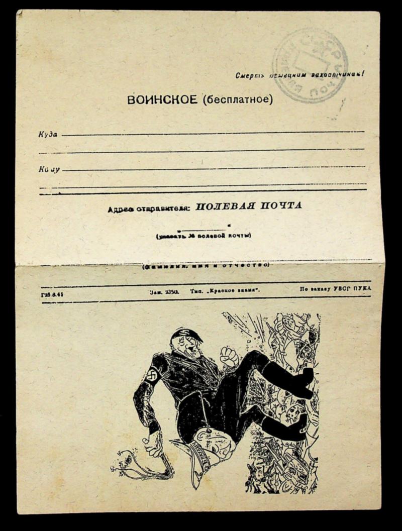 Russia CCCP WWII Military free mail letter card w/ Anti-Hitler Nazi Germany caricature (Image)