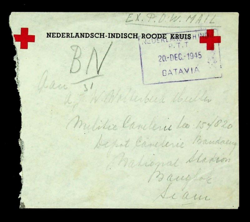 Netherlands Indies 1945 WWII Red Cross Prisoner of War cover from Batavia to Bangkok Siam Thailand (Image)