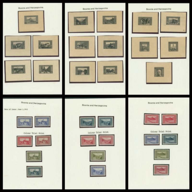 Bosnia and Herzegovina 1906 issue 1h - 5k 33leaves specialized collection containing proofs and color trials. It is also well presented showing perf. varieties good condition, mainly unused with some used,YouTube(Image1)
