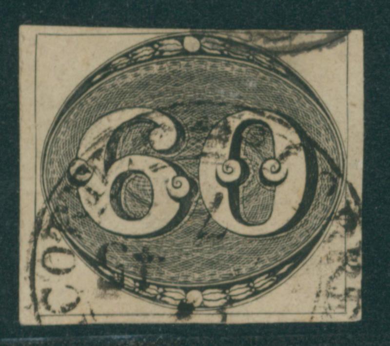 Brazil 1843 60r used stained, catalog value:40,000YEN (Image1)