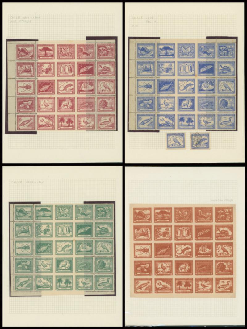 Chile 1948 plants, animals 3 panes of 25 with a forgery sheet stained, mainly unused with some used, catalog value:17,000YEN (Image1)