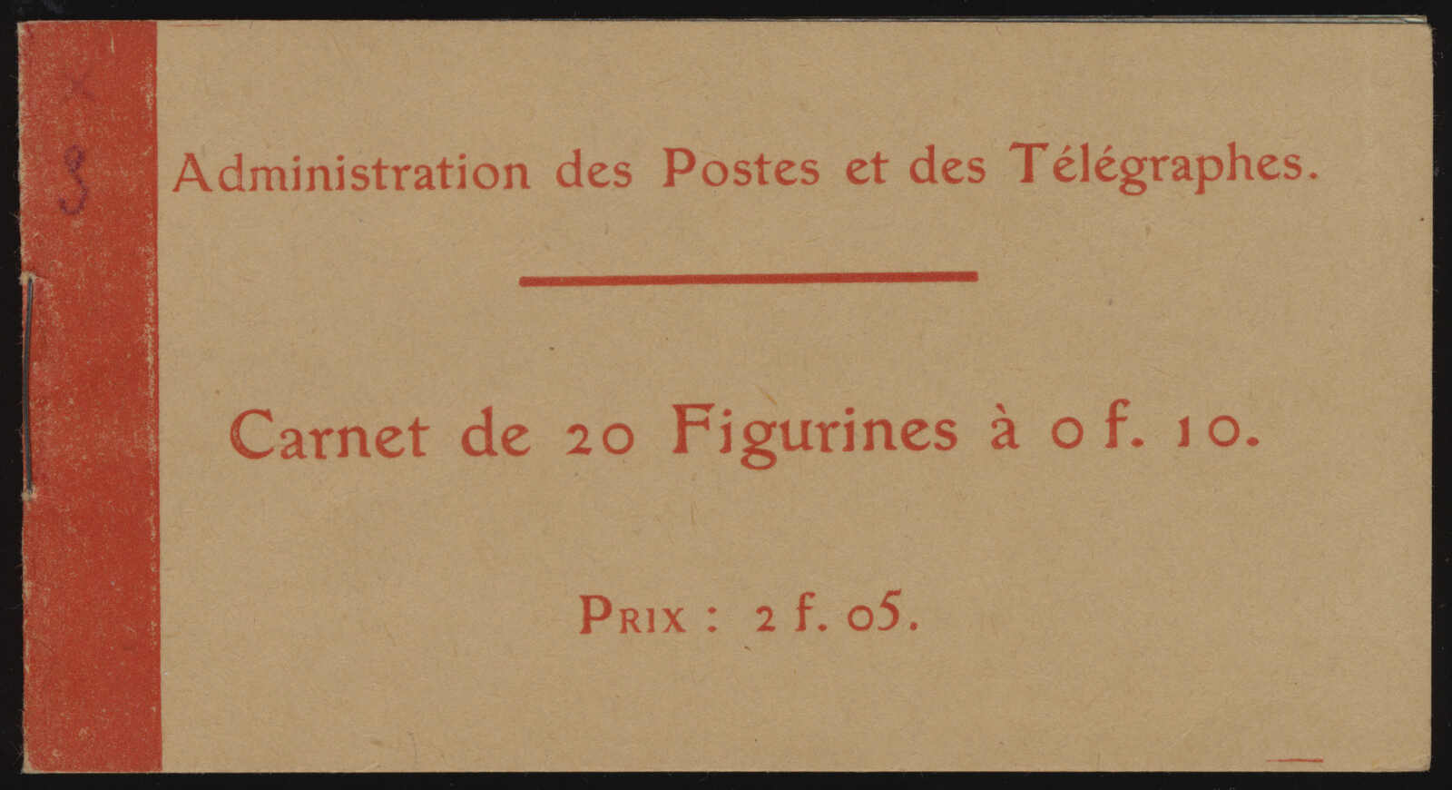 575 nh 135-C1 image1906, 10f Sower (Type III) complete booklet of twenty, originally priced at 2f 05, with clean, tight staple and one pane showing unusually well-centred stamps for the issue, all stamps never hinged, minor pencil notations on reverse, otherwise fresh and very fine. (Image 1) (Image 2)