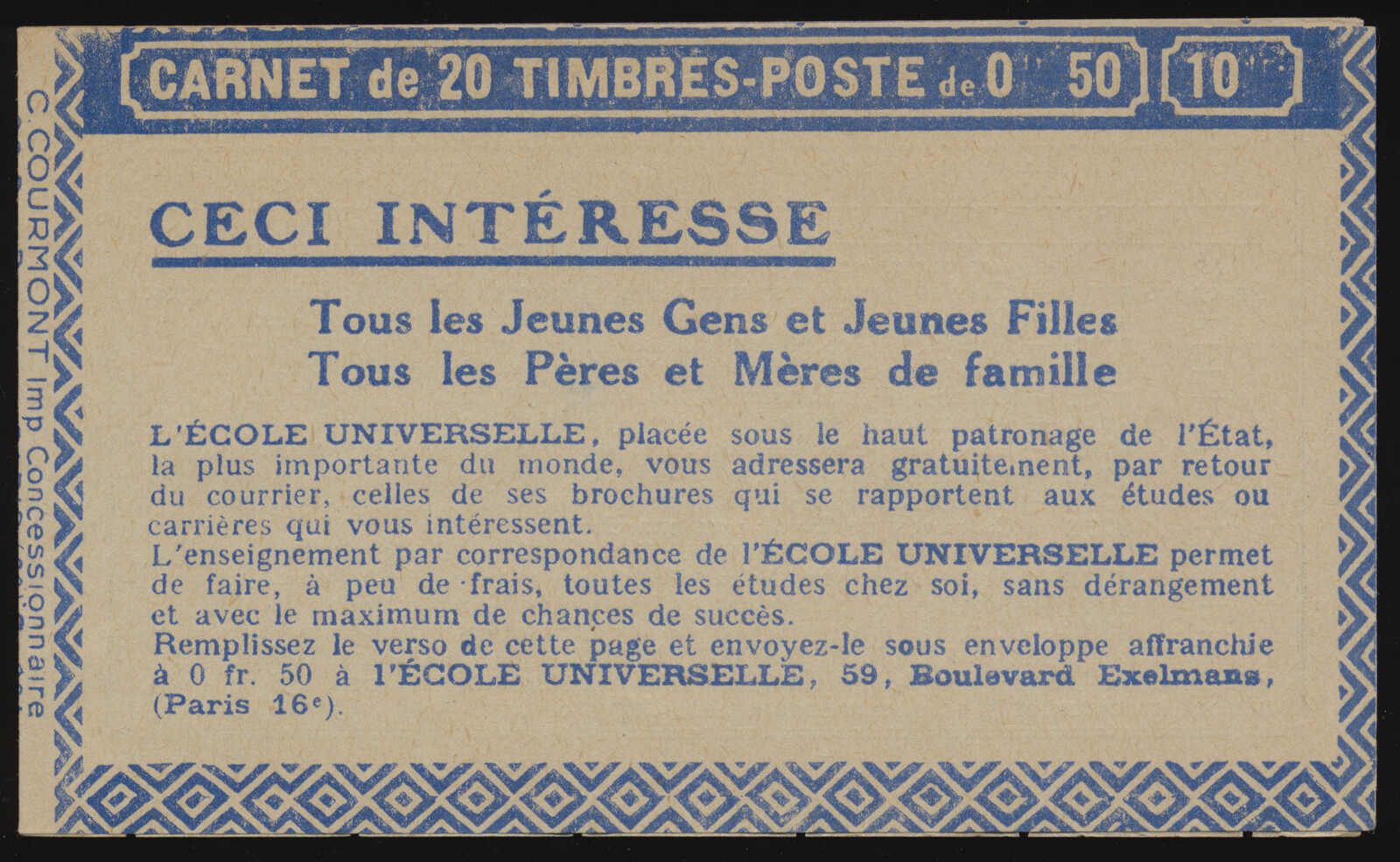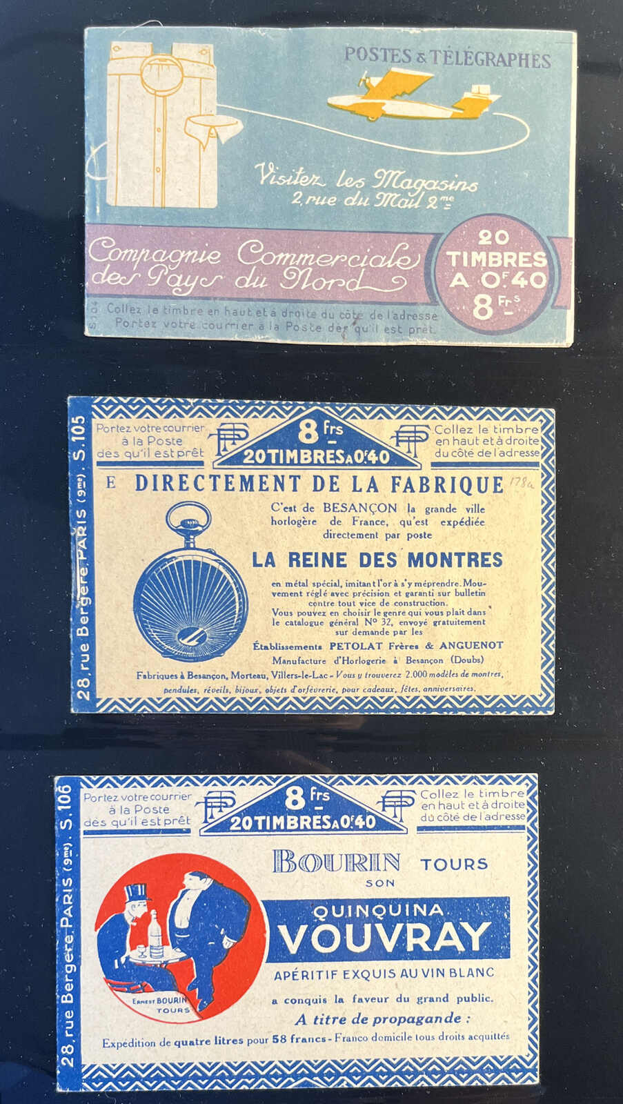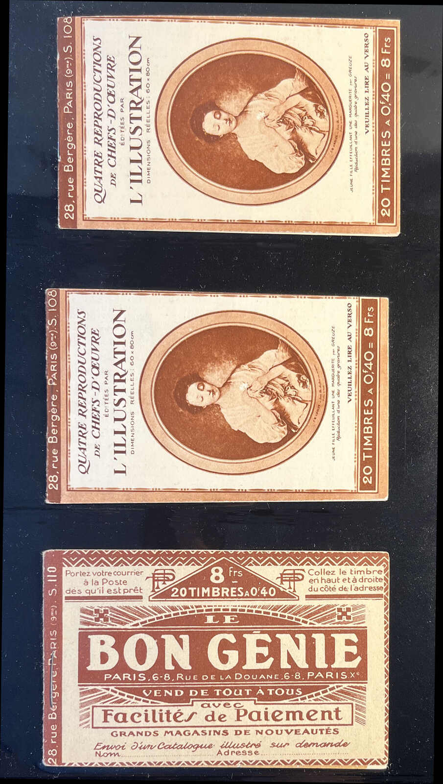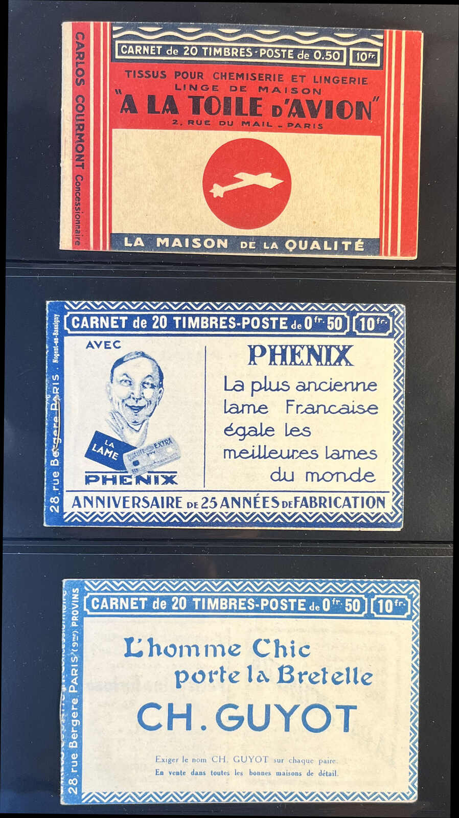 581 nh 199-C50 image1926–1931, two panes of ten 50c shaded Sower booklets, with advertising labels Bledine–Mazda–Benjamin–Benjamin, series S.233 and S.234, both with blue covers depicting infants and a powdered milk tin, pristine condition throughout, purchased from Stanley Gibbons. (Image 1) (Image 2) (Image 3) (Image 4)