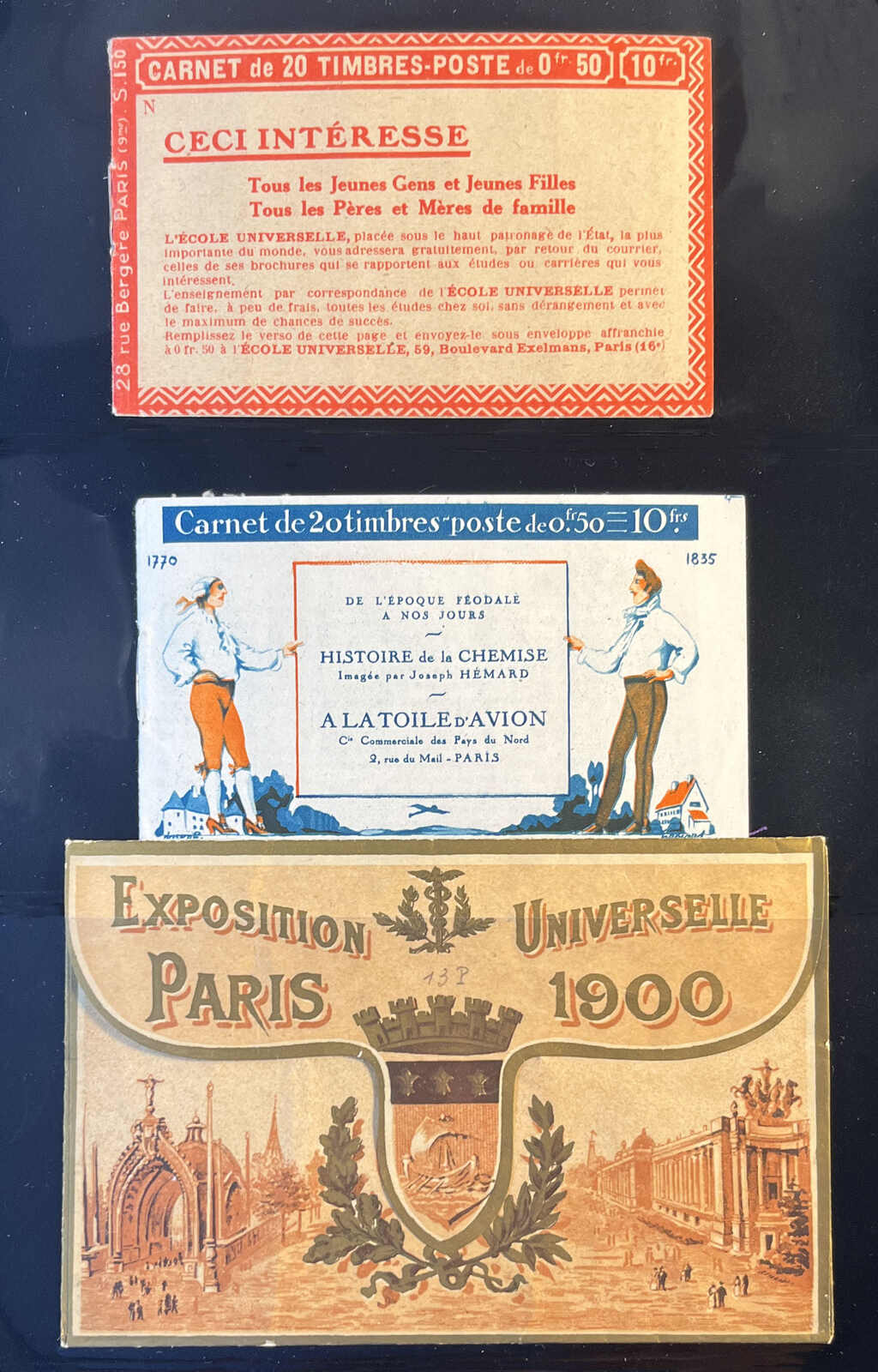 580 nh 199-C25 image1924–1931, group of five booklets featuring the 50c orange Sower, all different, comprising 199-C25, 199-C38, 199-C40, 199-C45 and 199-C46, never hinged, the booklets fresh with only limited wear, overall very fine, a tough assortment to find in this quality; accompanied by a 1900 Paris Exposition Universelle presentation envelope. (Image 1) (Image 2)