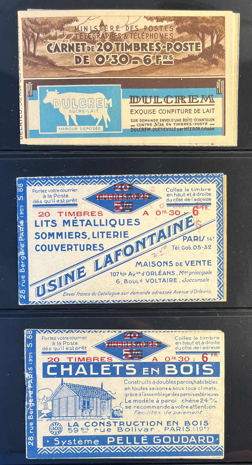579 nh 193 image1924-26, grouping of six 40c olive & orange Sower booklets, comprising 193-C1, 194-C3, 194-C3 (series S.106), 194-C4 (series S.108, two) and 194-C4 (series S.110), the 193-C1 showing ink transfer from the internal advertising on the reverse of stamps, all stamps never hinged, overall very fine. (Image 1) (Image 2)