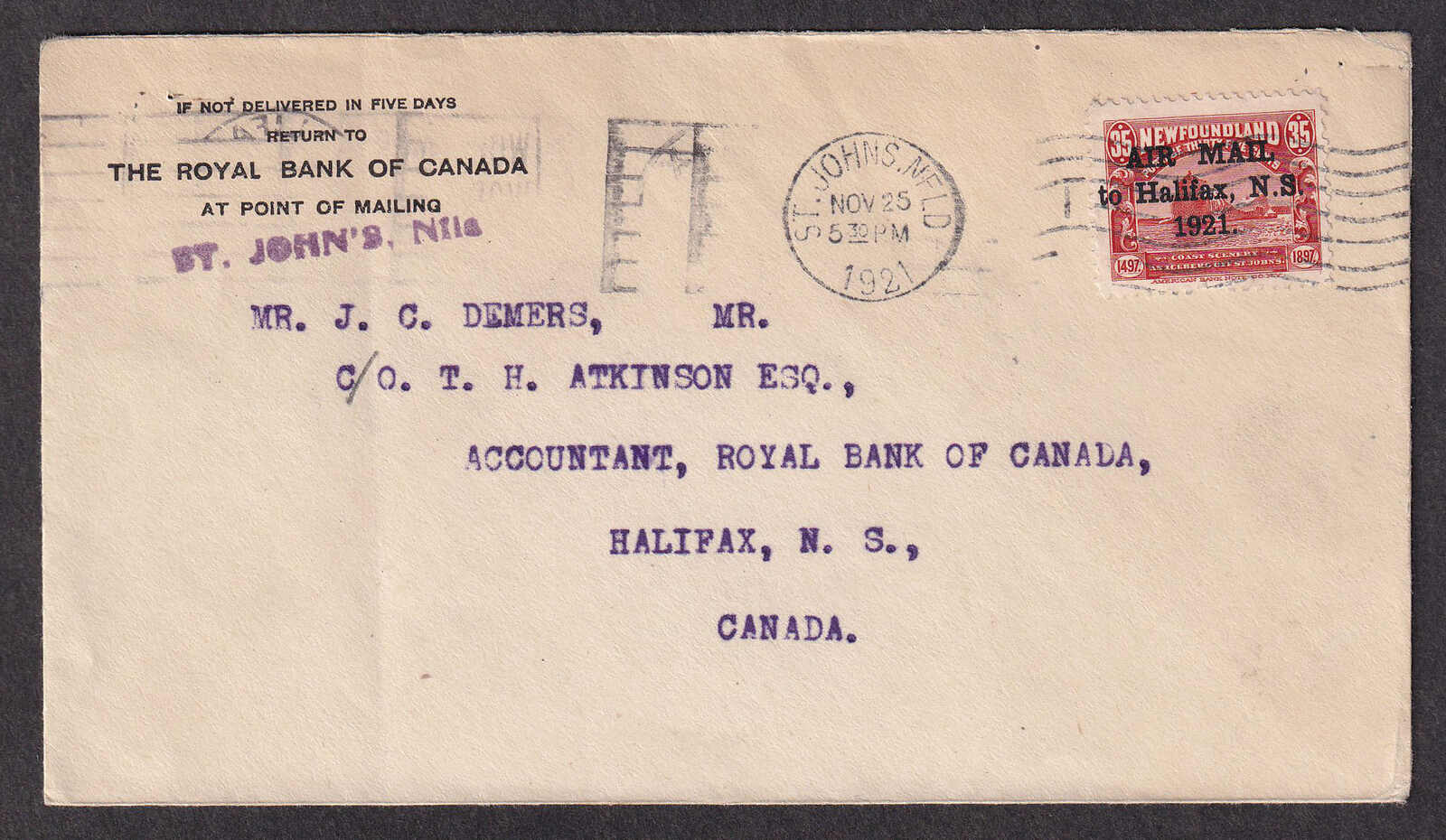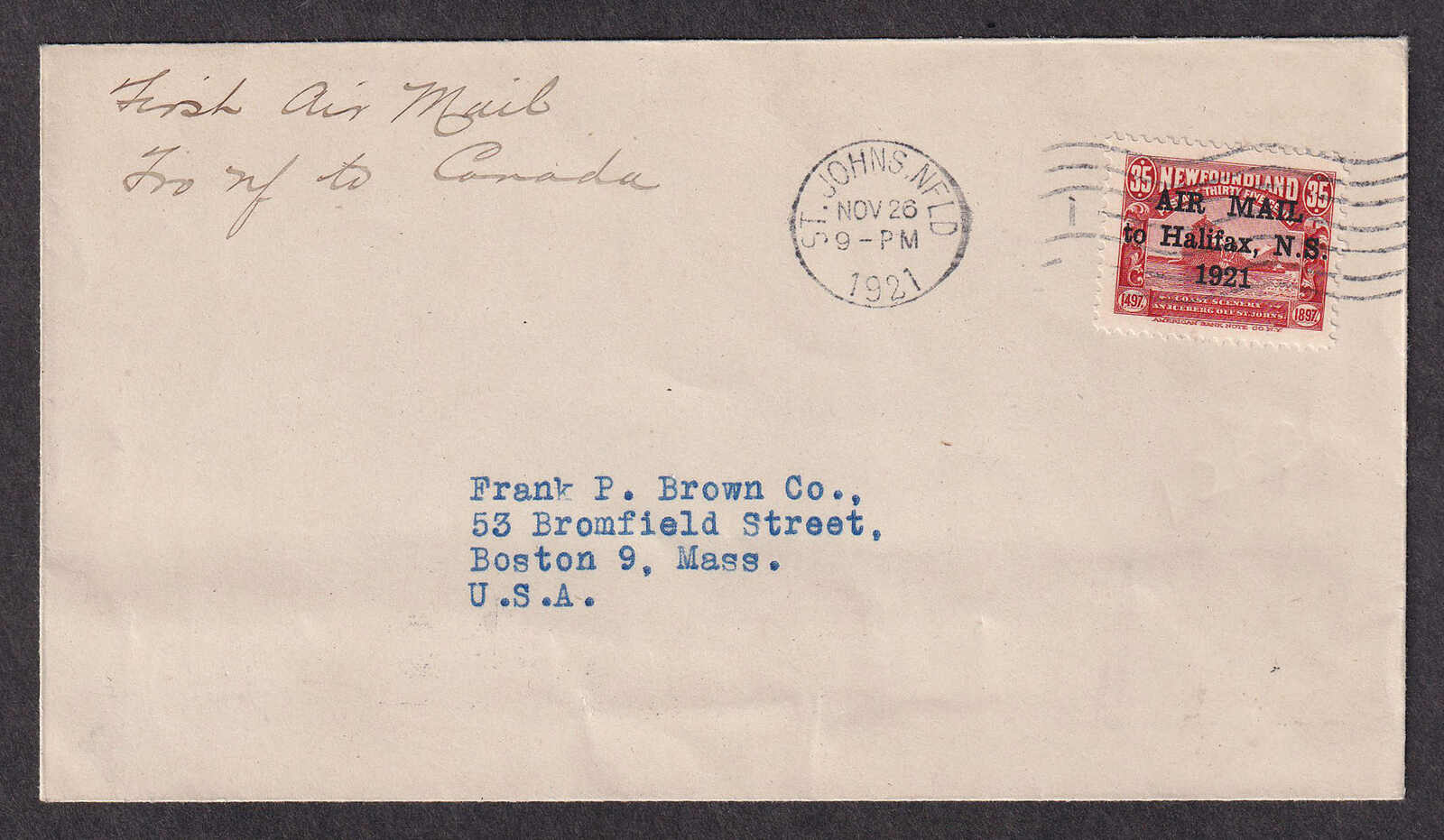 77 CVR C3, C3b image1921 (November 25/26), 35c Halifax Airmail, two examples, one each showing the “period after 1921” and “no period after 1921” varieties, both tied to covers by St. John’s machine cancels with Halifax (4 Feb) arrival backstamps, an attractive pair. (Sc. #C3, C3b) (Image 1) (Image 2) (Image 3) (Image 4)