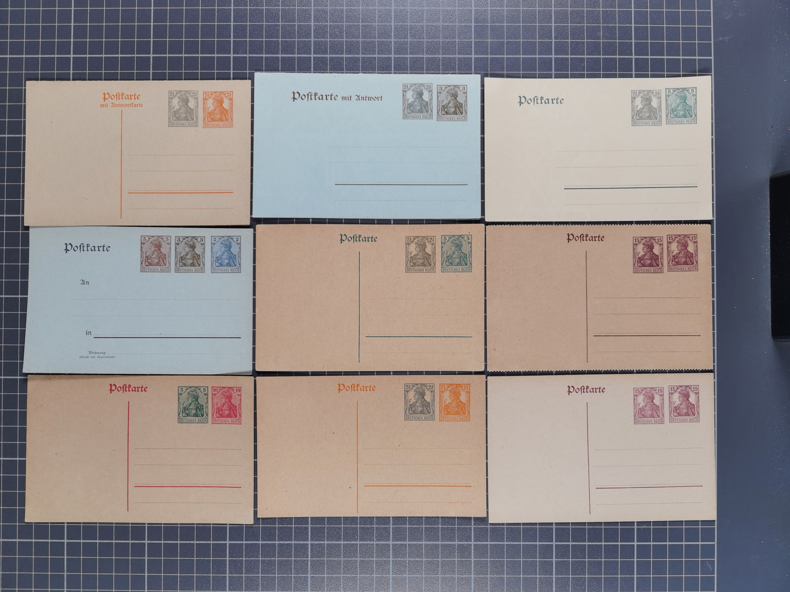 1906/20, Sammlung von 33 verschiedenen amtlichen Ganzsachen mit Germania-WSt.-Zudrucken auf private Bestellung (PZP), inkl. Doppelkarten und gezähnte Karten, alle Stücke tadellos ungebraucht, genaue Aufstellung liegt bei.