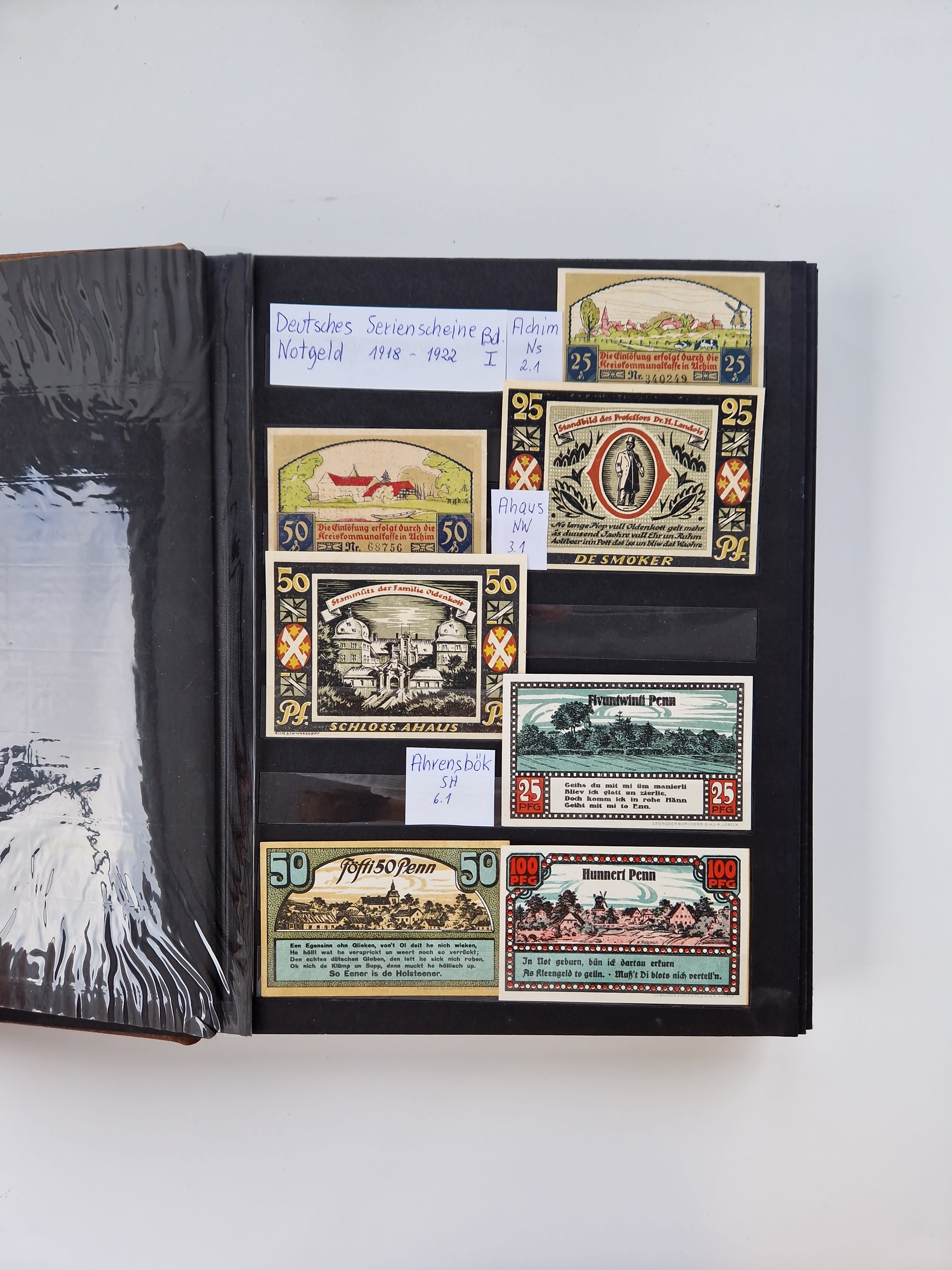 Notgeld-Serienscheine, saubere Sammlung in 16 meist dicken Steckalben, sauber nach Orten und Serien sortiert, überschlägig etwa 7/8000 Stück, dazu 4 Kataloge
