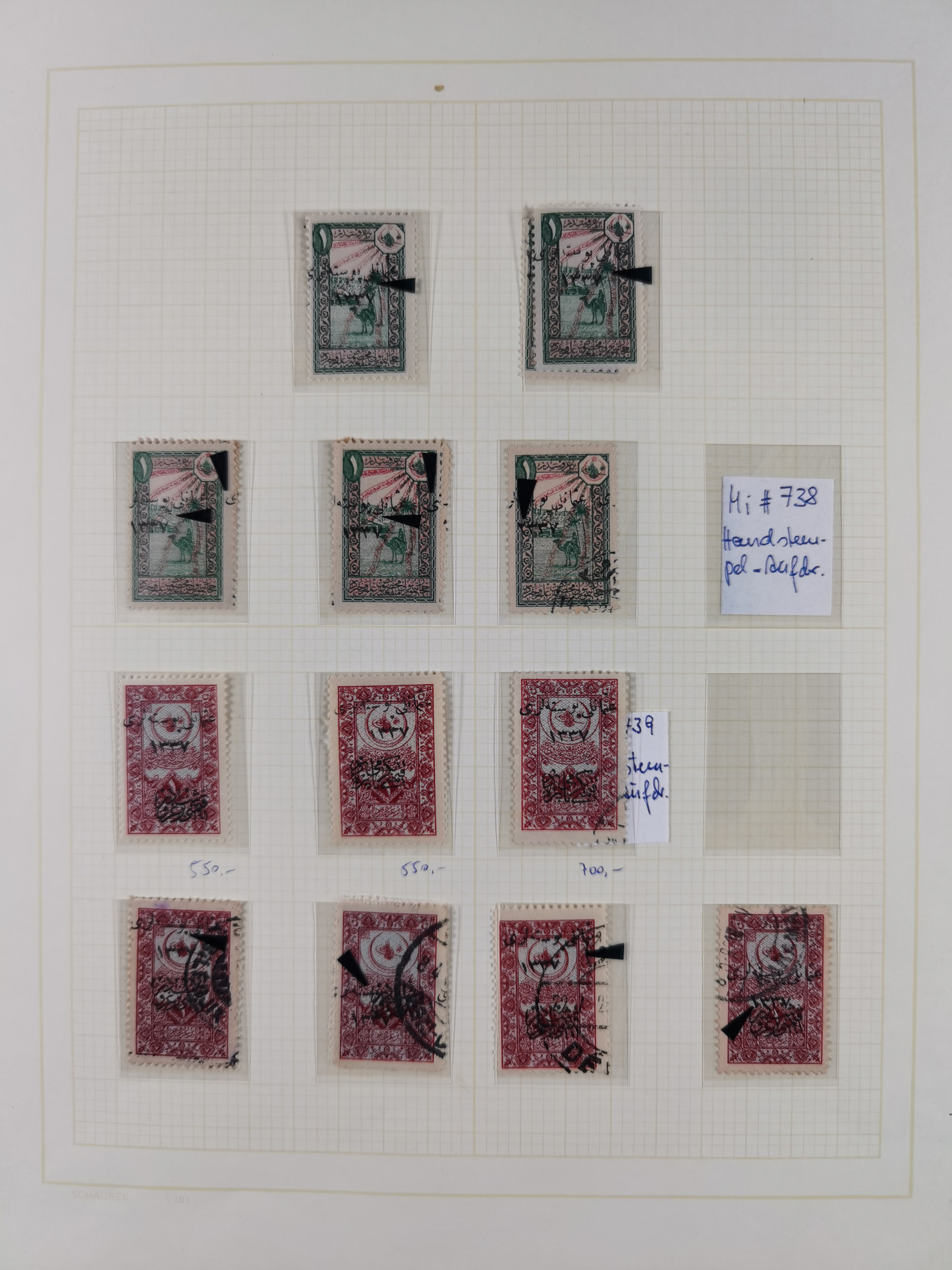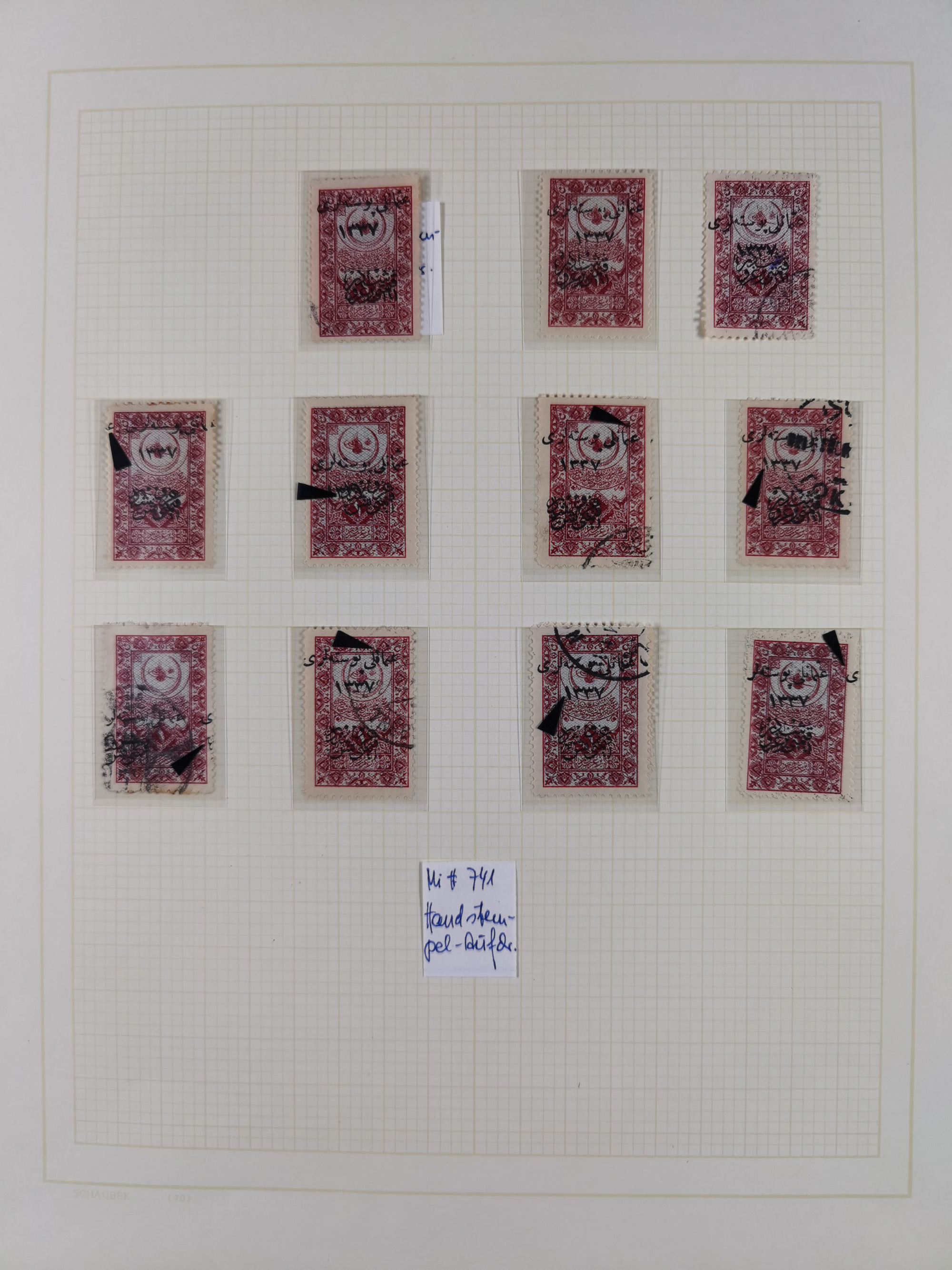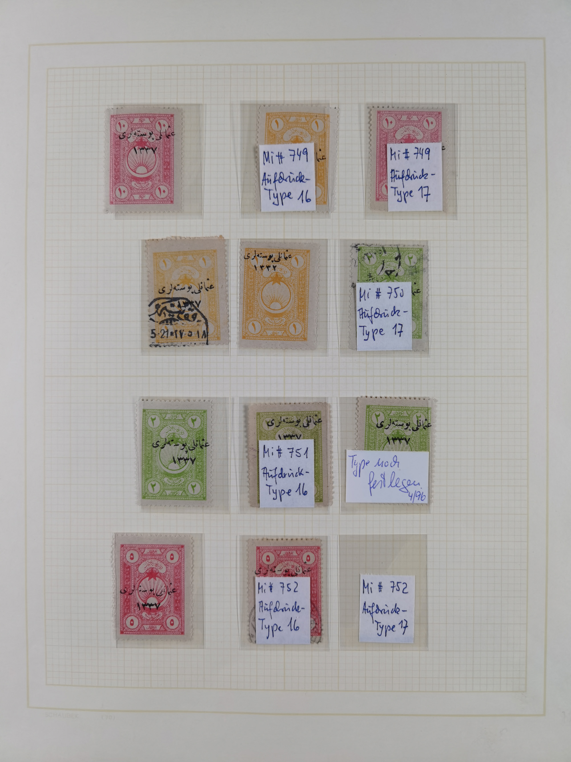 1920/23, Turkey in Asia collection on eight album pages starting with first issues, including Mi.739, 742 mint and used, specialized with inverted and double overprints, shifted overprints and errors, plate flaws catalogued according to the book by Max Mayo