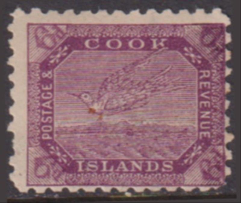 2266 M imageCook Isl 1898 6d Torea (white tern), purple, sideways wmk, p11. SG 18. Cat £45. LH mint. (Image)