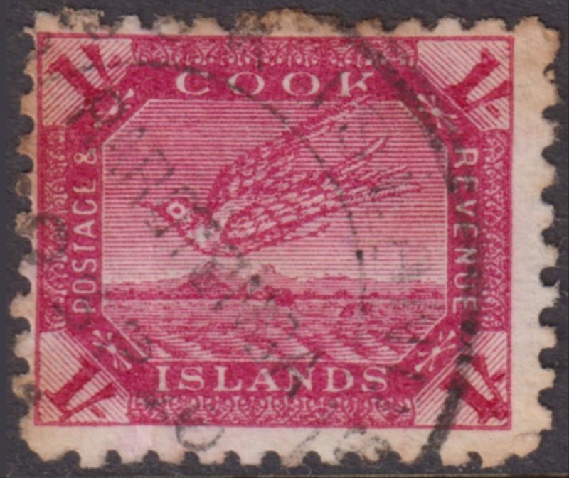 2268 U imageCook Isl 1900 1/- White Tern, deep carmine, p11. SG 20. Cat £65. FU. (Image)