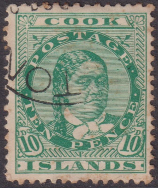 2262 U Cook Isl 1892 10d Federation. Trimmed perfs at right. SG 4. Cat £150. FU.