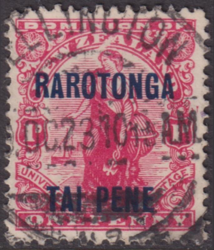 2272 U imageCook Isl 1919 1d Dominion, "Feather" flaw (Wellington 1923 cds). SG 47var. FU. (Image)